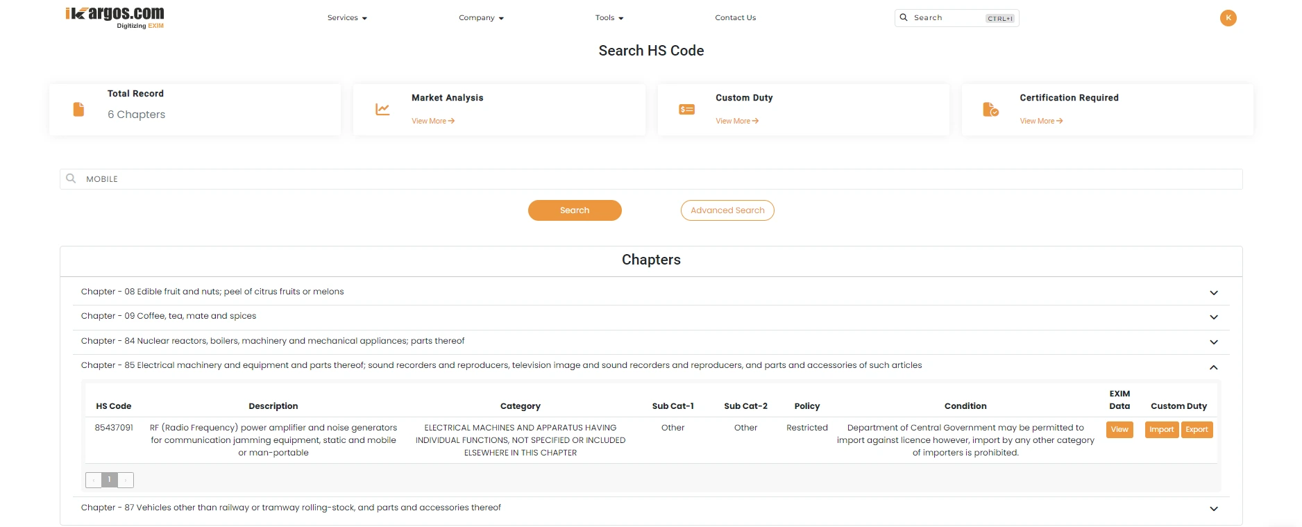 iKargos HS Code search empowers you to navigate international trade with confidence. Experience the ease and efficiency of finding the right HS code for your goods. Sign up for a free trial or contact us to learn more!