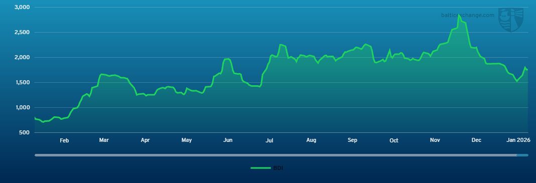 The BDI moved from 1,567 on January 16, 2026 to 1,650 on January 19 and 1,762 on January 23.
